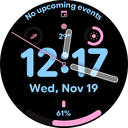 ⚙️ Five Custom Complications – Add battery, weather, steps, heart rate, calendar & more.